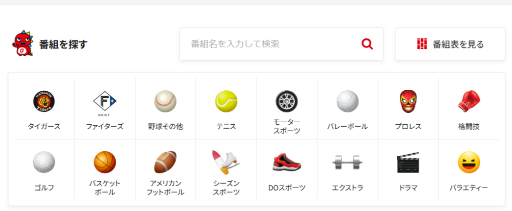 プロ野球の阪神タイガース試合・キャンプ中継ほか関連番組が年中放送されています。その他にも高校野球、大学野球、ゴルフトーナメント、ゴルフレッスン、ボウリング、卓球、クライミング、山登り、フィッシングなど。