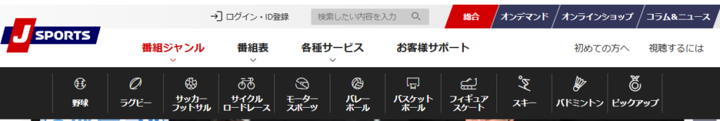 引用:JSPORTS公式サイトのメニュー
