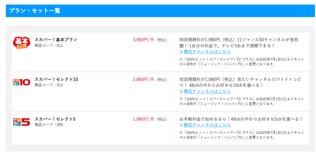 スカパー! にはプランの選び方がいくつかあります。