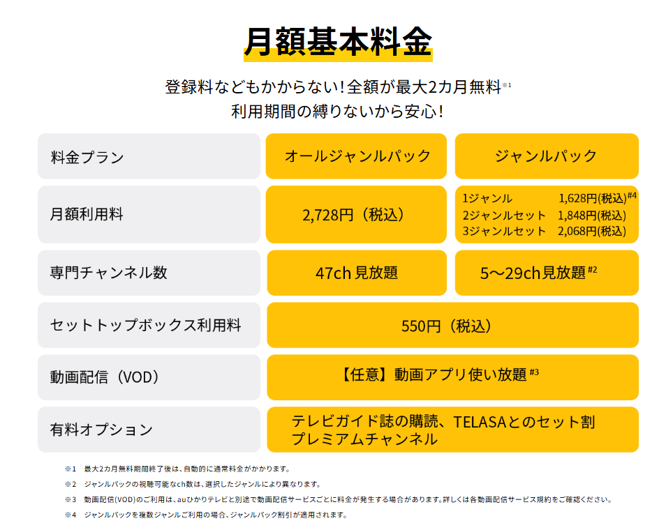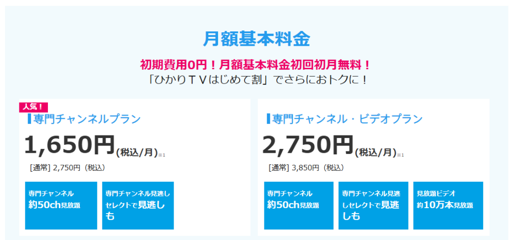プラン名概要月額(基本料+視聴料)